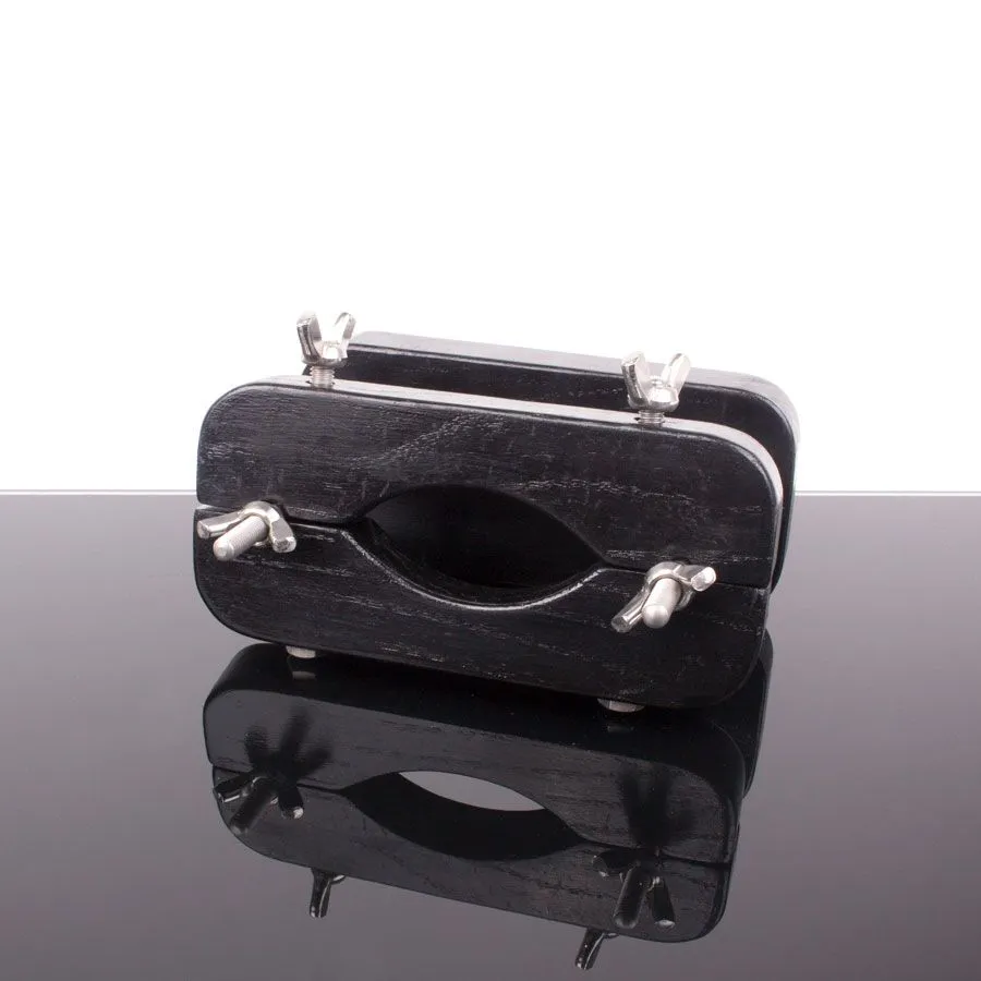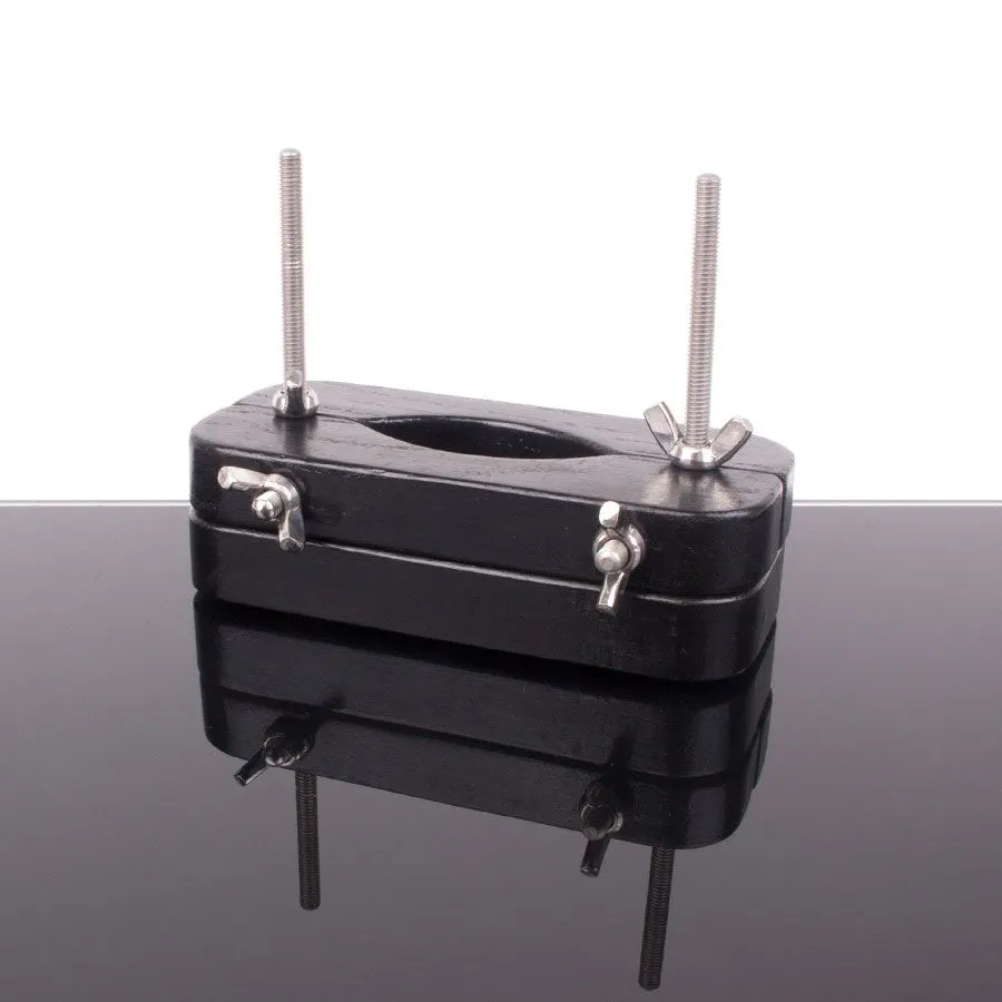 Gemaakt van hout en afgewerkt met zwarte lak. Deze gepatenteerde Testicle Vice is volledig verstelbaar, zowel bij het aanbrengen van de Ball Buster, als bij het aanpassen van de druk op de testikels.
