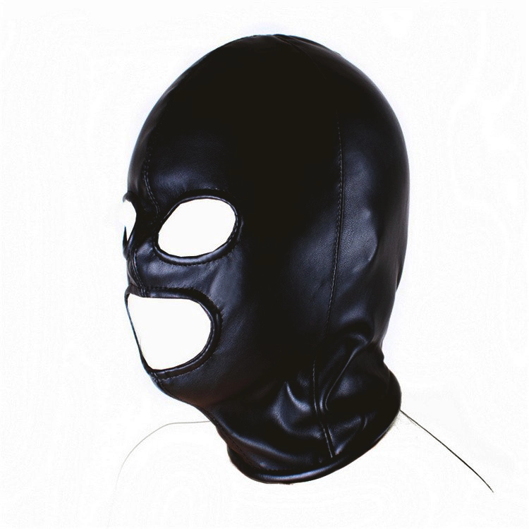 Zwart PU lederen bondage masker met opening voor de ogen en de mond, ideaal voor slaven! Dit masker heeft een realistische leder textuur en een zwarte rits aan de achterkant.