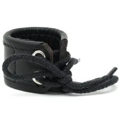 Rimba Bondage Play Balzakstretcher gemaakt van echt leder. Deze stretcher sluit met een katoenen veter en is 3 cm hoog.