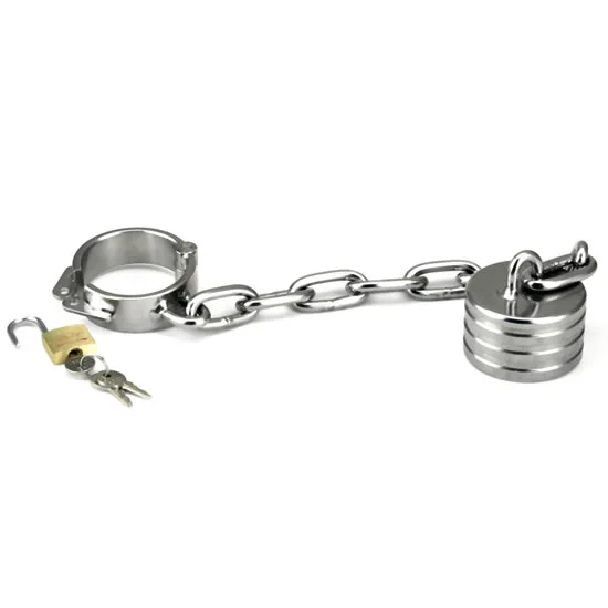 Next time you tell your partner or slave that they should carry their weight in this relationship, make them mean it with this Cock Ring and Ball Weight set. Simply attach the cock ring around the cock and balls (at the base) and lock it (using a standard padlock — sold separately). If you wish then you can just place the cock ring around the balls alone, this turns the product into a pure ball stretcher. Then using the nickel snap, attach the ball weight and chain onto the cock ring. You will enjoy watching your partner roam around carrying extra weight and while your partner could enjoy the added pressure on his cock and balls. For extra fun, you can attach a second ball weight to the snap link and create additional pressure.