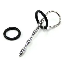 MAE-Toys Stainless Steel Urethral Stretching Penis Plug With Black Silicone Head Ring