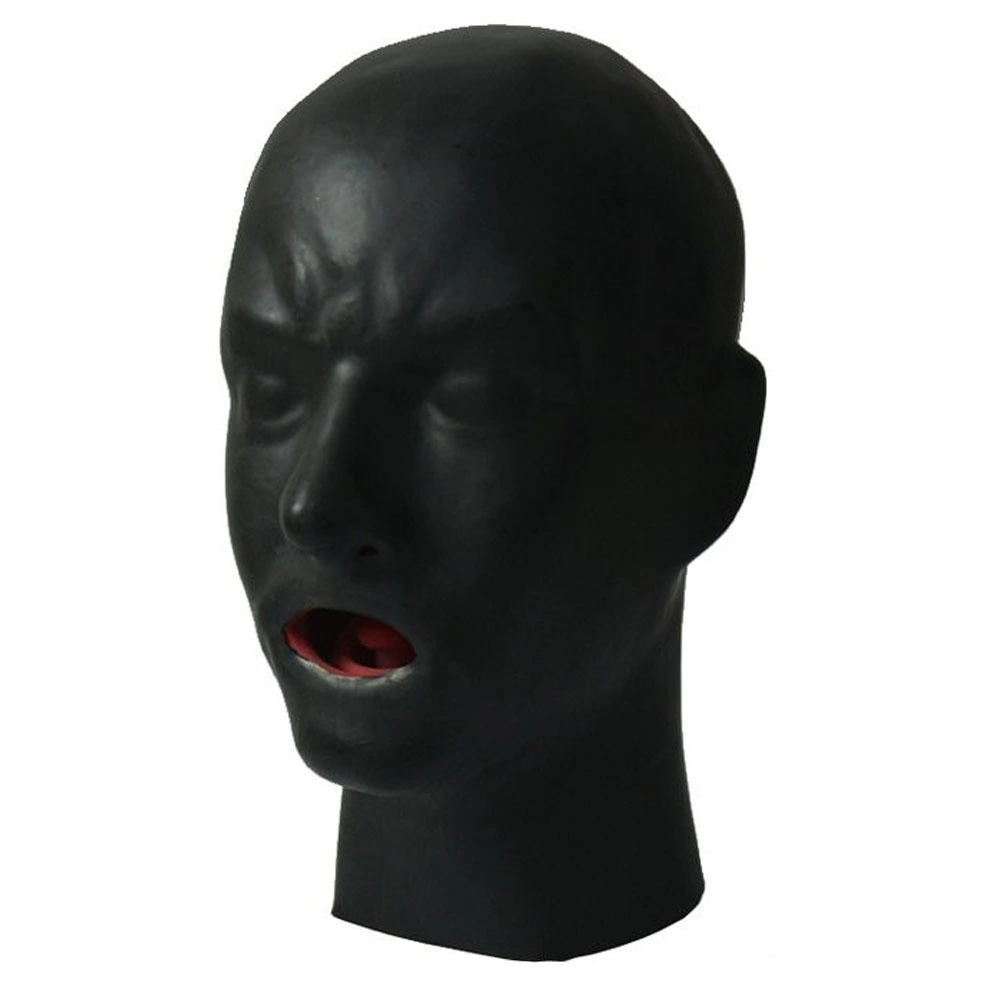 Zware latex kap met Latex Tongue Gag van MAE-Toys