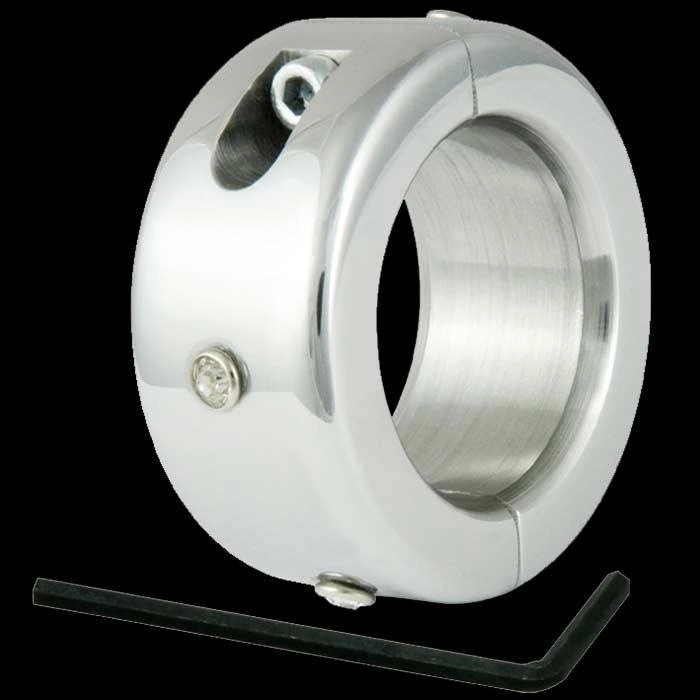 Hooggepolijsde balzakstretcher voorzien van rondom ingelegde strass steentjes. Deze balzakstretcher wordt gesloten met een inbusschroef.