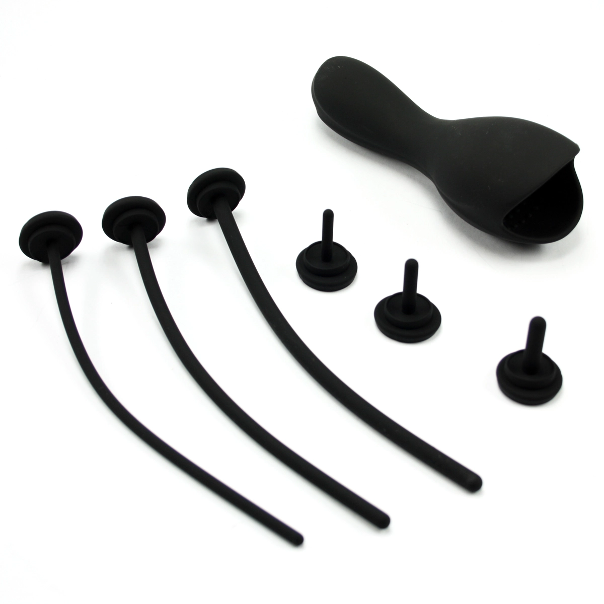 Siliconen penis vibrator met noppen om de eikel te stimuleren en wisselbare urethra sounds in verschillende lengtes en diktes. Dit veelzijdige speeltje beschikt over 10 vibratiemodussen om jouw pik te laten genieten, zowel van de binnenkant als de buitenkant!