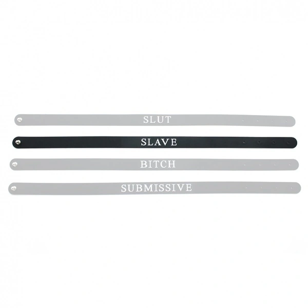 Verras uw onderdanige met deze hoge kwaliteit siliconen halsband. Deze comfortabele siliconen halsband is verstelbaar, om een goede pasvorm te garanderen. De halsband maakt de uiteindelijke verklaring, met het woord SLAVE op de voorkant in verhoogde witte siliconen letters. Verstelbare drukknopsluiting in de rug.