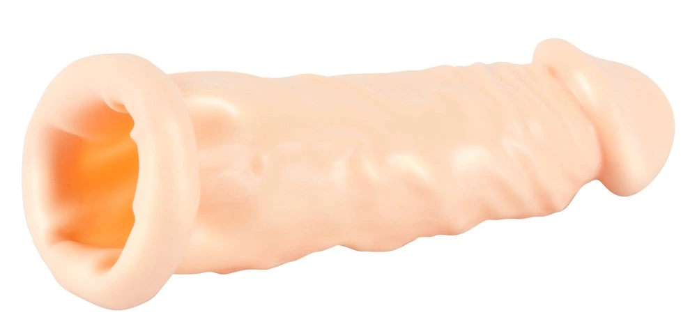 Penisvergroter gemaakt van extreem zacht materiaal. Vergroot zijn penis met 2,5 cm. Met uitpuilende eikel en aderen – fluweelzacht van binnen. De extender is aangenaam flexibel en rekbaar.