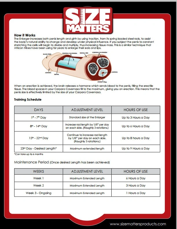 De SMP verlenger zorgt voor een zowel langere als dikkere penis d.m.v. traction, van zijn met springveer geladen stalen pennen, om zodoende het natuurlijk vermogen van het lichaam te assisteren door veranderingen te ontwikkelen onder phygische druk. Als je de penis onder constante druk brengt zullen de cellen beginnen zich te delen en te vermenigvuldigen, dus ontwikkelen van extra thus increasing tissue massa. Dit is een vergelijkbare techniek die Africaanse stammen al jarenlang toepassen om hun oren en lippen te vergroten.