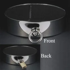 Prachtige halsband van hooggepolijst edelstaal. – Binnenzijde gevoerd met zachte huidvriendelijke laag rubber. – hoogte: 30mm – materiaal: stainless steel 1mm – gepolijst hoogglans edelstaal omtrek (binnenzijde) van 320 – 450mm hoogte 30mm RoestVrijStaal 1mm.
