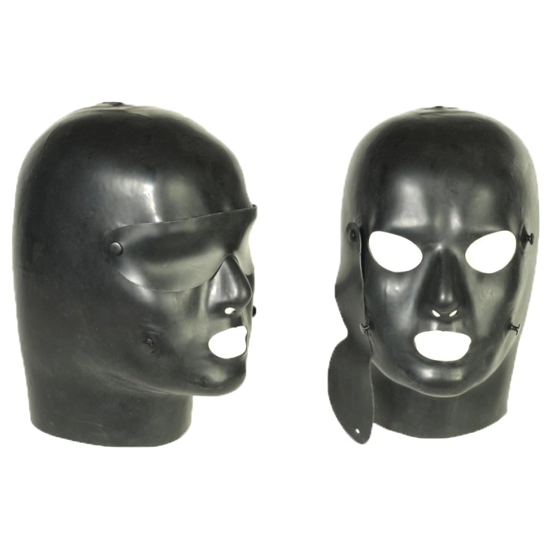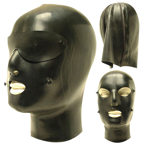 Zwart, Clinic red (oranje) of semie-transparant Latex disciplinemasker van Studio Gum.